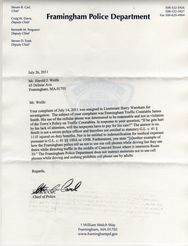 On July 30th, 2011, I received this reply from the police department concerning this complaint. |